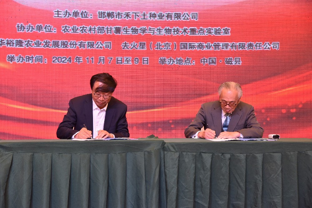 為深化中日韓企業(yè)在甘薯產(chǎn)業(yè)領域交流合作,建立更緊密的伙伴關系,助力甘薯企業(yè)發(fā)展壯大,推動甘薯產(chǎn)業(yè)蓬勃發(fā)展。2024年11月8日,在第十二屆東亞甘薯國際研討會會議現(xiàn)場,隆重舉行了中日韓企業(yè)代表簽約儀式。在此重要時刻,邯鄲市禾下土種業(yè)有限公司分別與日本東亞紅薯友好協(xié)會、韓國農(nóng)業(yè)法人 HortFarm簽訂合作協(xié)議。天津豐華裕隆農(nóng)業(yè)發(fā)展股份有限公司與韓國幸福紅薯簽訂合作協(xié)議。此次簽約,不僅標志著簽約各方在甘薯育種、良繁、無毒栽培、加工、市場開發(fā)等多維度建立更緊密的聯(lián)系,更預示著東亞地區(qū)甘薯產(chǎn)業(yè)將迎來更加廣闊的合作前景與發(fā)展機遇。