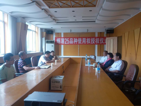 2017年9月11日,邯鄲市禾下土種業(yè)有限公司與煙臺(tái)市農(nóng)業(yè)科學(xué)院在山東煙臺(tái)簽定"煙薯25"甘薯品種使用權(quán)許可合同,有效日期15年。煙臺(tái)市農(nóng)業(yè)科學(xué)院授權(quán)邯鄲市禾下土種業(yè)有限公司"煙薯25"甘薯品種權(quán)在審定區(qū)域內(nèi)的使用權(quán),包括生產(chǎn)權(quán)、包裝權(quán)、經(jīng)營(yíng)權(quán)和維權(quán)。雙方共同對(duì)審定區(qū)域內(nèi)生產(chǎn)、銷售煙薯25品種進(jìn)行宣傳和規(guī)范。邯鄲市禾下土種業(yè)有限公司在河北省范圍內(nèi)可以確定營(yíng)銷、生產(chǎn)合作單位。煙薯25品種使用權(quán)合作洽談?dòng)N人辛國(guó)勝與禾下土公司崔伏喜經(jīng)理合影留念煙薯25品種使用權(quán)授權(quán)證書合作雙方人員合影煙臺(tái)農(nóng)業(yè)科學(xué)院禾下土脫毒煙薯25原種基地