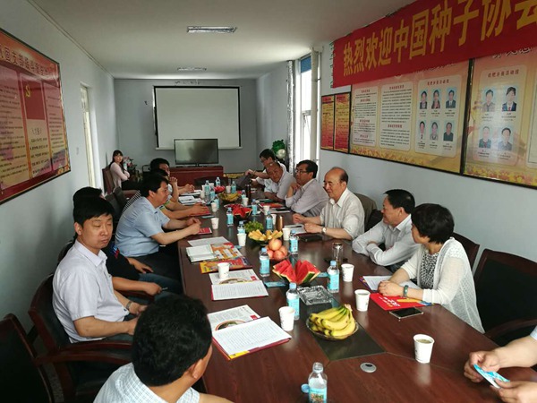 2016年5月24日上午,中國(guó)種子協(xié)會(huì)秘書長(zhǎng)李立秋到邯鄲調(diào)研種子企業(yè)經(jīng)營(yíng)狀況,河北省種子協(xié)會(huì)秘書長(zhǎng)封五平、邯鄲市農(nóng)業(yè)局局長(zhǎng)李文杰陪同調(diào)研。邯鄲市種業(yè)協(xié)會(huì)全體會(huì)長(zhǎng)、副會(huì)長(zhǎng)參加會(huì)議。李立秋秘書長(zhǎng)就新種子法內(nèi)容進(jìn)行了解讀,對(duì)種子企業(yè)未來人才引進(jìn)、合作發(fā)展、加強(qiáng)科研投入、拓展視野、專業(yè)發(fā)展等提出寶貴建議,對(duì)禾下土脫毒甘薯種苗特色產(chǎn)業(yè)取得成績(jī)給予肯定并給予支持。