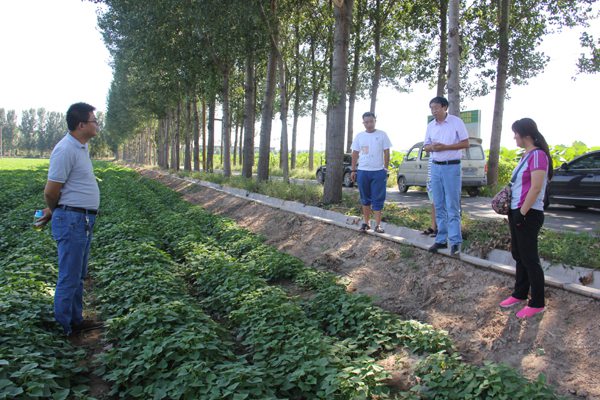 2016年9月2日,河北威遠(yuǎn)生化農(nóng)藥有限公司華北區(qū)工作組一行6人到禾下土脫毒甘薯原種薯基地現(xiàn)場(chǎng)觀摩,邯鄲市禾下土種業(yè)有限公司總經(jīng)理崔伏喜陪同參觀。工作組詳細(xì)了解了禾下土脫毒甘薯原種薯生產(chǎn)基地在科研育種、標(biāo)準(zhǔn)化生產(chǎn)、病蟲草害防治的工作開展情況,并圍繞脫毒甘薯產(chǎn)業(yè)在紅薯專用生物農(nóng)藥、生物肥料等方面進(jìn)行了深入探討。