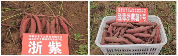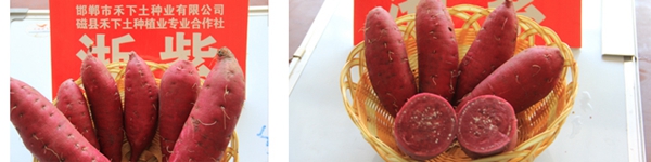 該品種萌芽性好,苗期長勢旺,莖蔓長,葉片心型帶齒,葉色綠;結(jié)薯集中,個(gè)數(shù)較多,平均單株結(jié)薯數(shù)5.1個(gè),平均單薯重106.1克,50~250克中薯比例58.7%;薯塊紡錘或長紡錘型,薯皮紫色,薯肉紫色,表皮光滑;薯塊干物率35.3%,鮮薯蒸煮食味較甜、粉;抗性經(jīng)徐州國家甘薯研究中心鑒定高抗莖線蟲病、抗根腐病和蔓割病,中抗黑斑病,耐儲性好。