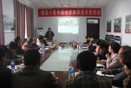 2014年10月31日上午,由磁縣農(nóng)牧局和邯鄲市禾下土種業(yè)有限公司聯(lián)合舉辦的磁縣小麥冬前化學除草培訓會及禾下土脫毒紅薯種苗技術推介會在禾下土公司會議室召開,參會人員包括磁縣農(nóng)牧局包鄉(xiāng)干部、各鄉(xiāng)鎮(zhèn)技術員和禾下土公司業(yè)務人員32人,會議由劉聚江副局長主持,德國拜耳公司河北總代理河北家園翟電虎經(jīng)理講解世瑪使用技術,禾下土公司王玉文推介脫毒紅薯(甘薯)種苗及種植技術。
