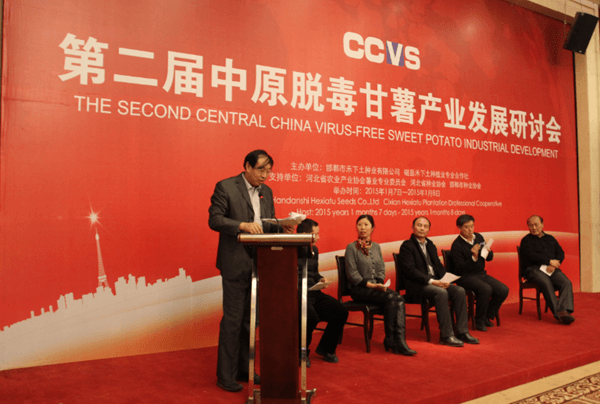2015年1月7—8日,第二屆中原脫毒甘薯產(chǎn)業(yè)發(fā)展研討會,在磁縣溢泉湖景區(qū)嵩景樓賓館召開。磁縣人民政府副縣長劉云堂參加了會議,并致了歡迎辭,河北甘薯專業(yè)委員會主任劉山林致賀辭,磁縣農牧局局長王明海主持了會議,河北省種業(yè)協(xié)會秘書長馮五平作了會議總結發(fā)言。