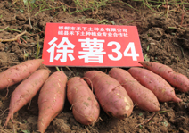 ① 特征特性:該品種赭紅皮桔紅肉,長紡錘形,蒸煮、生食口感好,許多地方已進行精包裝進超市,市民也把它作為一種禮品贈送親朋好友。徐薯34比一般的甘薯品種早熟20~30天,能早收早上市,彌補市場空缺,經(jīng)濟效益高,特別適宜城郊地區(qū)發(fā)展。② 品種來源:該品種是由徐州甘薯研究中心于以華北166為母本,群力2號為父本雜交選育而成的,原系號81-29-34,是一個優(yōu)質(zhì)、早熟的食用品種。③ 產(chǎn)量表現(xiàn):脫毒徐薯34比普通徐薯34增產(chǎn)增產(chǎn)60~104%,一般春薯畝產(chǎn)量2000公斤,夏薯畝產(chǎn)量1500公斤。④ 栽培要點:栽前浸苗,適宜密度每畝3600-4000株。適當早栽,結(jié)合覆膜可提前上市。其它管理措施同一般大田?!、?市場前景:該品種作為食用型和淀粉型兼用型甘薯新品種,有著極其優(yōu)良的品質(zhì)以及極高的產(chǎn)量,市場需求極大!