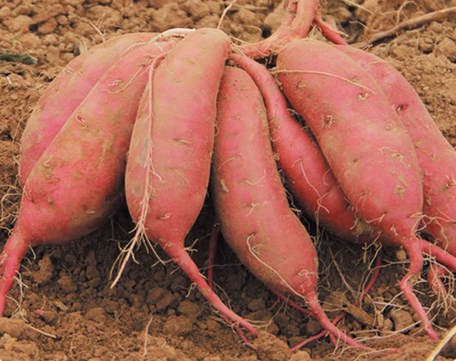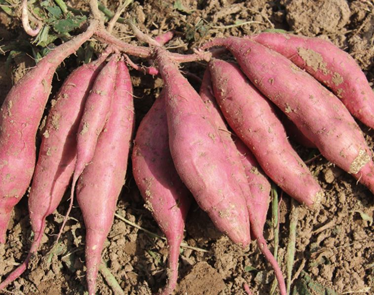 徐薯32① 特征特性:該品種秧蔓短。一般蔓長60~80厘米,澇天不超過110厘米。二產(chǎn)量高而穩(wěn)產(chǎn)。一般春薯畝產(chǎn)約為3500~4500公斤,夏薯畝產(chǎn)約為2500~3500公斤。三抗病性強。四口味好,薯形美觀。其薯口感香甜,軟糯。薯皮紅嫩,肉色金黃美觀。五淀粉含量高,干粉率約為23%~25%,制成粉條的粘度為900~1200,曬干率36%~38%左右。② 品種來源:該品種是國家甘薯中心以"徐薯55-2"為父本、"紅東"為母本育成的超短蔓優(yōu)質(zhì)高產(chǎn)食用及淀粉加工兼用型紅薯新品種,是經(jīng)國家種植試驗綜合表現(xiàn)較突出的紅薯新品種。③ 產(chǎn)量表現(xiàn):產(chǎn)量較高,春薯高產(chǎn)田畝產(chǎn)4000公斤左右,夏薯3000公斤以上。④ 栽培要點:栽前浸苗,適宜密度每畝3600-4000株。適當早栽,結(jié)合覆膜可提前上市。其它管理措施同一般大田。⑤ 市場前景:該品種作為...